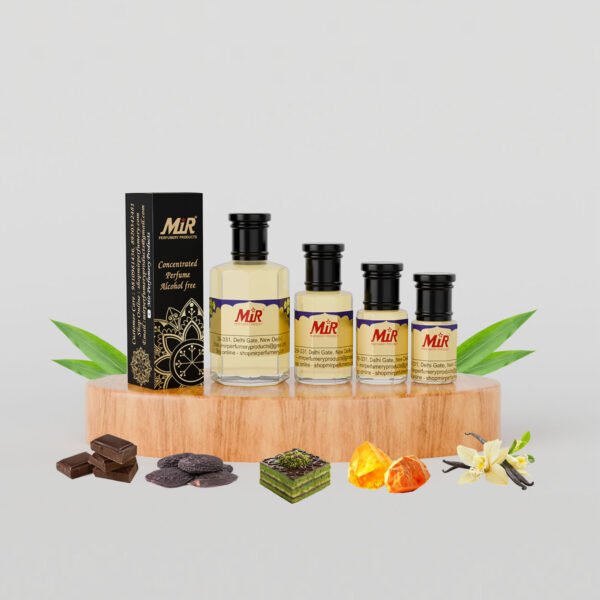 Indulge in the enchanting allure of Dubai’s viral Kunafa chocolate, now transformed into a captivating fragrance. A tantalizing blend of caramel, pistachio, nuts, chocolate, and milk awaits, creating a scent that is nothing short of magical. Exclusively at Mir Perfumery. Order now and let the magic unfold.